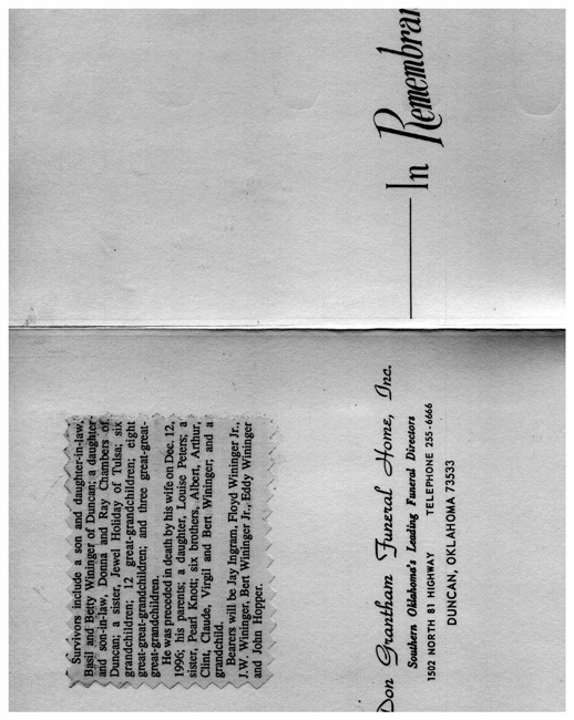 Notes: In Remembrance on 1st page - Poem by Majorie James Ames 2nd page - his life on 3nd page - Survivors on 4th page including Funeral Home Info.