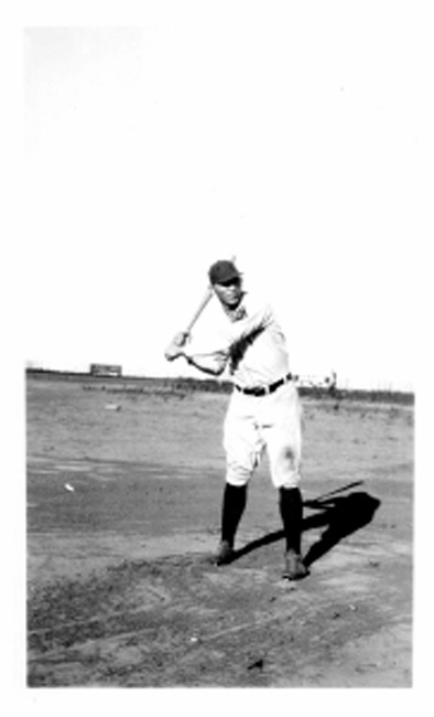 Chas Parker in uniform posing with bat