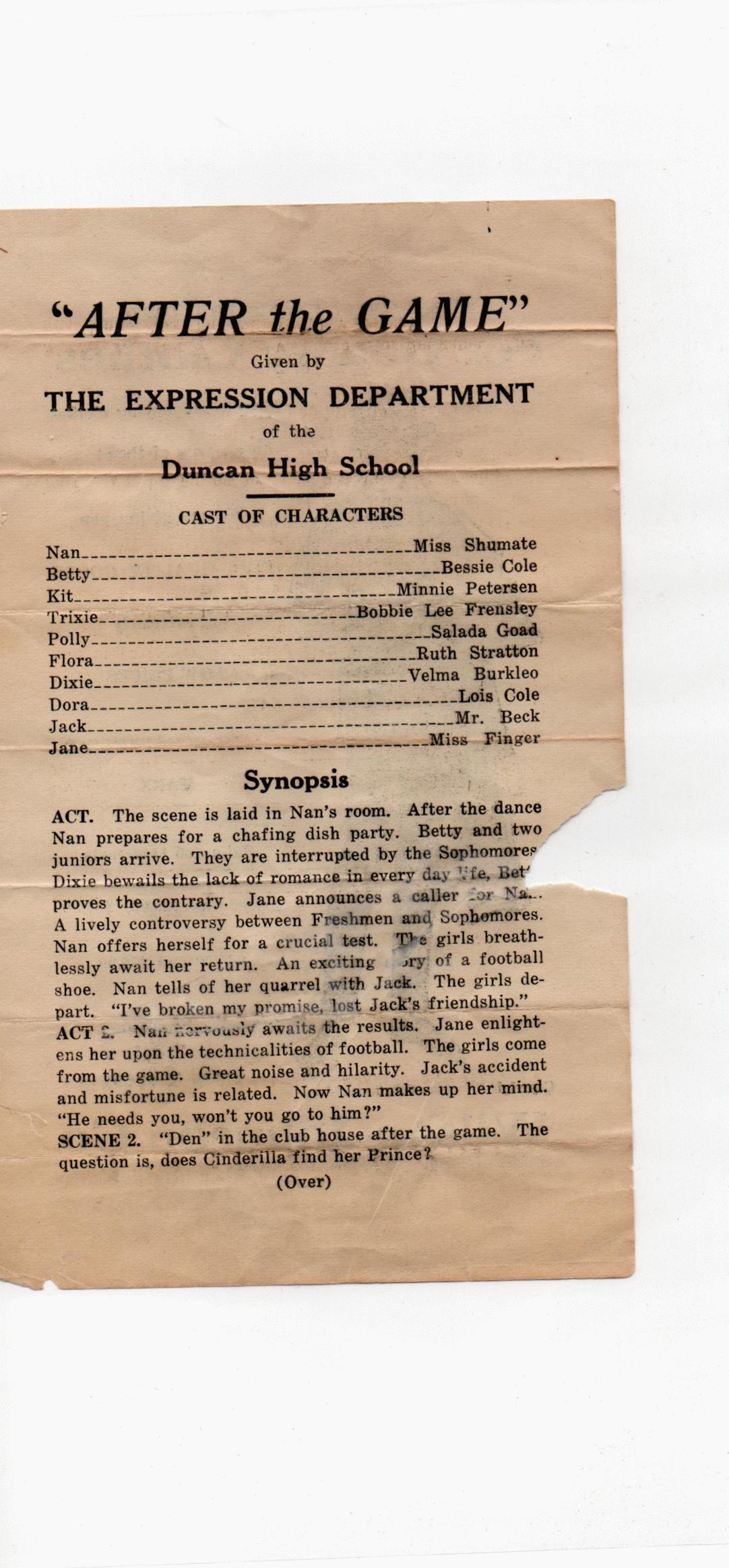 Alice Hinkson- Principal, Audrey Guthrie, Norma Berner, Beulah Haud, Clara Evans Fowler, J.M Sandlin, Josephine Edwards, Irene Fitzwater Morris |