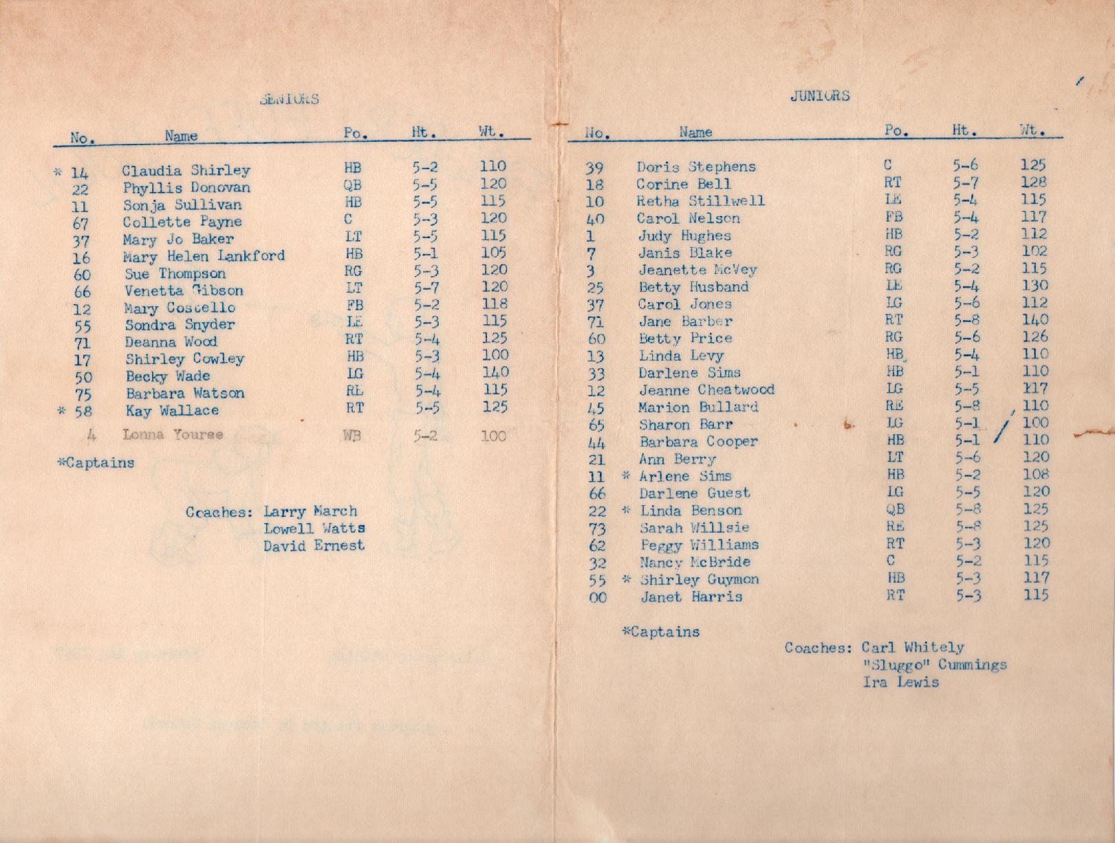 Middle Row: Pauline Dimery, Donna Jean Carpenter, Jolene Mardole, Martha Adams, Grace Shaefer, Glenna Lassaten